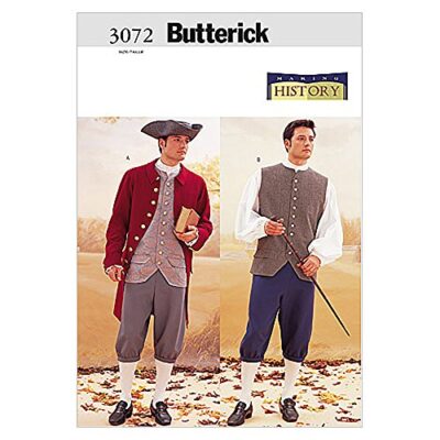 Butterick B3072 Revolutionary War Historical Men’s Costume Sewing Pattern, Sizes 44-48