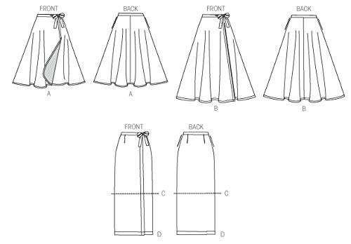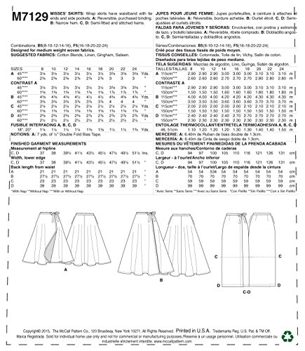 • Size: F5 (16-18-20-22-24) Includes pattern pieces and sewing instructions Made by McCall’s Patterns Copyright 2015 Printed in the U.S.A MISSES’ SKIRTS: Wrap skirts have waistband with tie ends and side pockets.