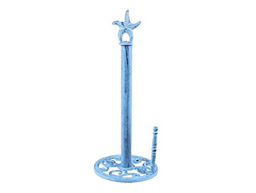 This rustic dark blue whitewashed cast iron starfish paper towel holder 15is perfect for any nautical inspired kitchen. It adds charm to any nautical room, while impressing your guests with their substance and thoughtfulness. Ideal for paper towels, this durable towel holder 15is crafted from cast iron. Easily mountable, display this decorative holder to show those who visit your home the Affinity for the Sea-Faring lifestyle.