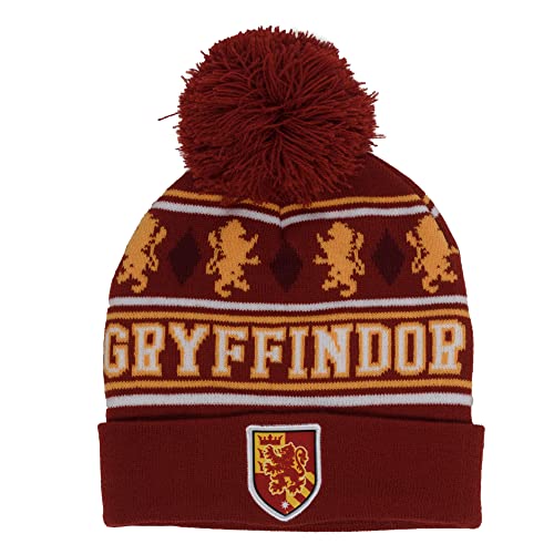 High-quality Harry Potter Wizarding World Gryffindor, Slytherin, Ravenclaw, Hufflepuff House Knit Scarf & Cuff Beanie Set, One Size (GRYFFINDOR)