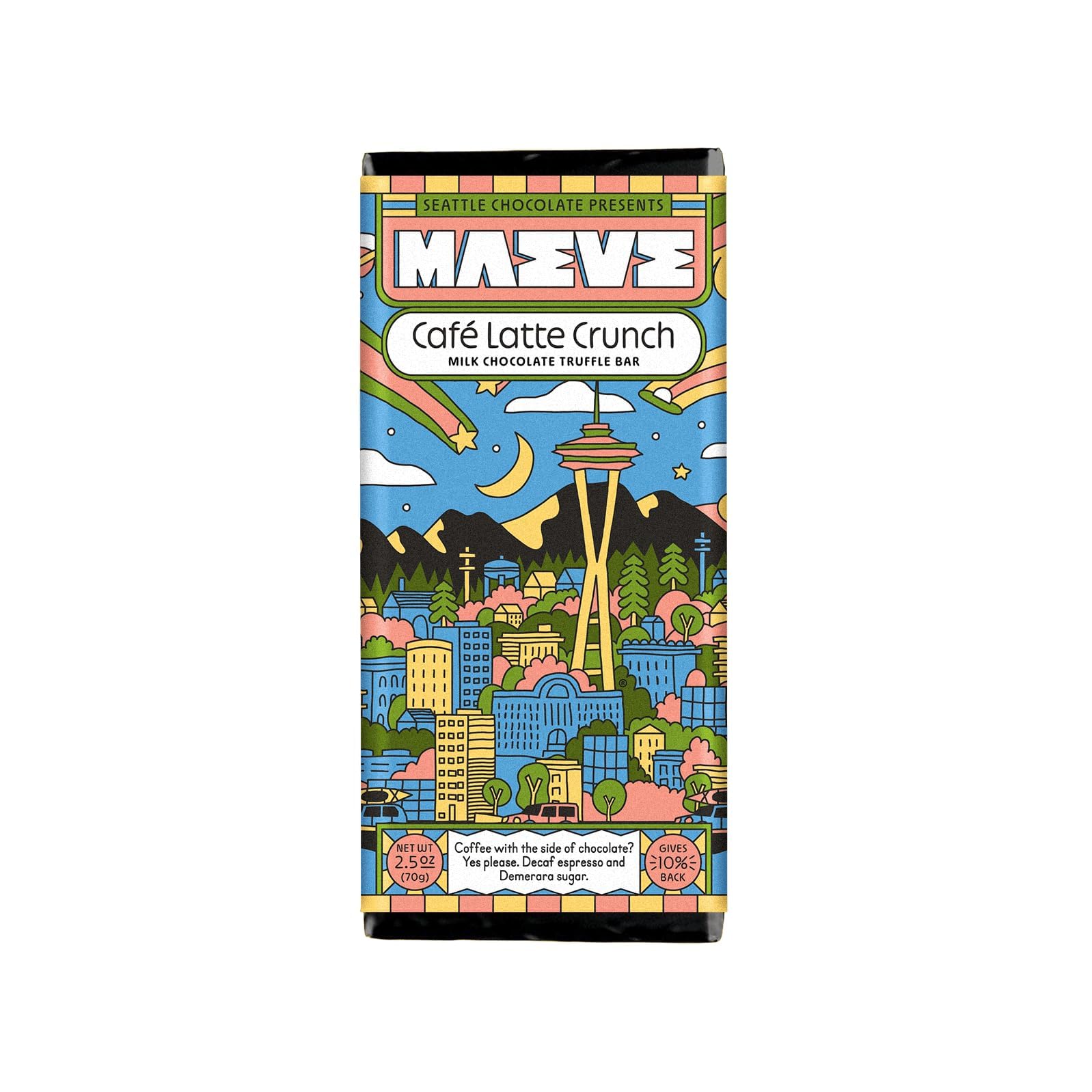 ABOUT THIS FLAVOR – The barista is cute, but let’s be real, you’re here for the lattes. Cafe Latte Crunch is our swoon-worthy take on specialty coffee from a city that knows coffee. You’ll fall hard for this creamy milk chocolate dream boat infused with decaf espresso and crunchy, sparkling demerara sugar. Adorable. NUTRITION – Milk Chocolate, Gluten Free, Non-GMO, Kosher Dairy. Contains milk and soy. This product is manufactured in a plant that processes milk, soya, peanuts, tree nuts, egg, and wheat products. MELTAWAY CENTER – Close your eyes and imagine this: not one, not two, but THREE layers of chocolate, with a creamy meltaway center made with just a drop of coconut oil. Now open your eyes. It’s real, and it’s dang tasty. You’re welcome. FUN FLAVORS WITH NONE OF THE BAD STUFF – Nobody wants to worry about the ingredients in their chocolate. You’re too booked and busy for that. Here at Maeve, all our flavors use natural ingredients, flavors, and colorings. All you’ve got to do is enjoy each bite. CARBON NEUTRAL