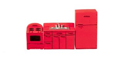 • Set includes refrigerator, sink unit and stove.