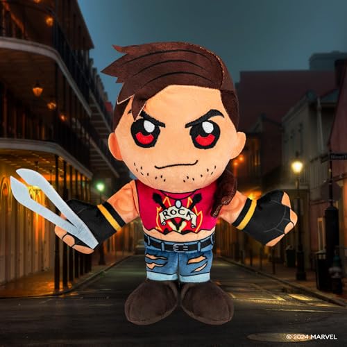 • Hand-sewn from ultra-soft crystal velboa fabric and designed with a bean bag bottom for easy display, this officially licensed plush captures Gambit’s rebellious charm.
