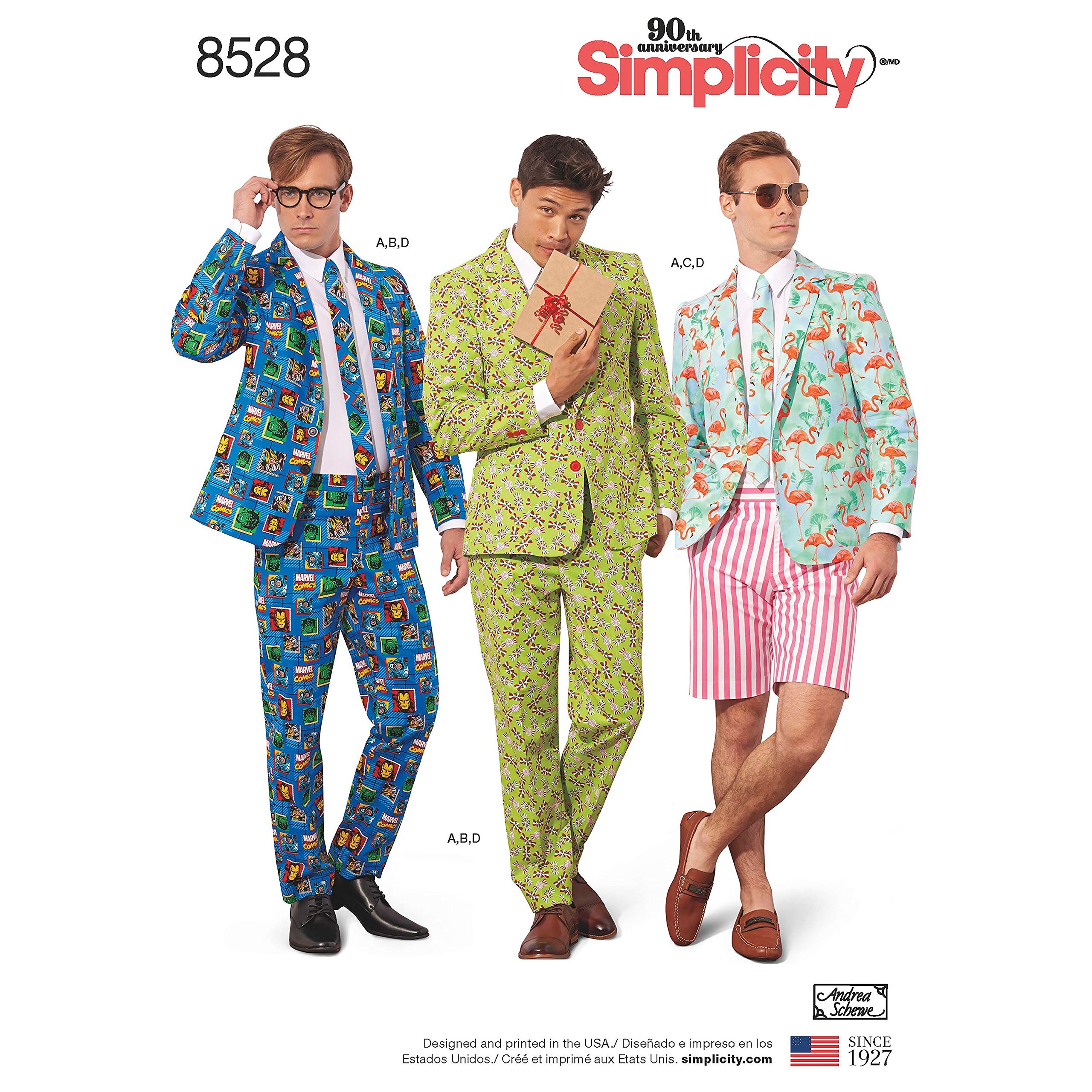 Includes sewing templates, instructions, and sizing guides for (1) tie, (1) jacket, (1) pair of shorts, and (1) pair of pants. Sewing pattern for men can be made in sizes 34, 36, 38, 40, and 42. Perfect as a costume for all kinds of occasions and events, this fun suit costume pattern can be customized however you see fit! Ideal fabrics for each suit include linen and cotton types. All Simplicity sewing patterns are designed made in the United States. Dress to impress (and maybe get a few laughs, too) with this fun suit sewing pattern kit! The kit includes sewing templates, instructions, fabric suggestions and sizing guides for (1) tie, (1) jacket, (1) pair of shorts, and (1) pair of pants that can all be made in men’s sizes 34, 36, 38, 40, and 42. All Simplicity patterns are proudly designed and printed in the United States with multi-language instructions.