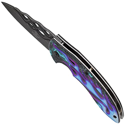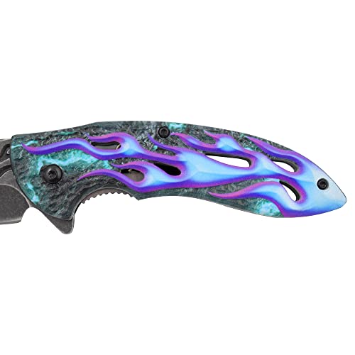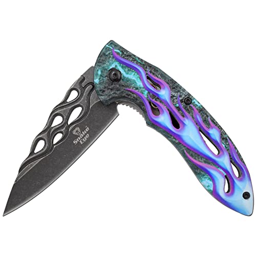 • Snake Eye Tactical EDC Smooth Folding Pocket Knife 8 Inches Overall length of Knife When Opened 3.5 Inches 440 Stainless Steel Design Stone Washed Blade 5 Inches Fire Graphic Metal Handle.